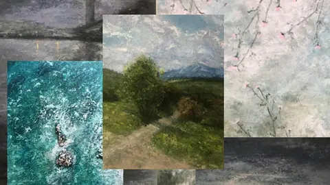 A través de la técnica utilizada, acrílico sobre tabla con polvo de mármol como elemento de carga, la pintora dirige nuestro punto de atención hacia unas ricas texturas que revalorizan la materialidad del cuadro y que ayudan a enfocar nuestra atención en el carácter táctil del paisaje.