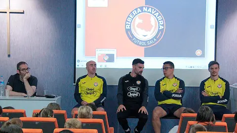 Cerca de 80 escolares del CP Elvira España de Tudela han disfrutado de la visita del Ribera Navarra FS dentro de su Tour Uvesa Alpico, un proyecto con el que el club naranja, Grupo Uvesa y Alpico fomentan la vida saludable y el deporte entre cerca de un millar de escolares de la zona.