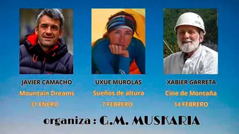 Este viernes 7 de febrero, la protagonista será Uxue Murolas, una montañera que ha alcanzado cumbres de más de 8.000 metros, como el Manaslu y el Dhaulagiri, y ha intentado escalar el Kanchenjunga, quedándose a 8.300 metros. Su filosofía es escalar sin serpas ni oxígeno, siguiendo un estilo muy personal, como quien dice, 'a lo Juan Palomo, yo me lo guiso, yo me lo como'. Y la última jornada, el 14 de febrero, será con Xavier Garreta, un veterano expedicionario de 83 años, uno de los pioneros que escaló los 8.000 metros en los años 70 y 80. Le gustaba documentar sus expediciones con cámaras de la época, como la Super 8 de 16 milímetros. Ahora ha ofrecido su material a la Filmoteca Navarra, que lo ha digitalizado en HD. El largometraje que proyectaremos estará dividido en cuatro partes: Los inicios de un comienzo, Kenia-Kilimanjaro, Sombras del K2 y Descubriendo Perú.
