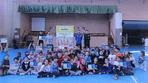 Tres miembros del club, Juan Luis Pérez, director de Marketing, y los jugadores Anás y Espín visitaron a los alumnos de último curso de Primaria del centro ribero, en cuyo patio, al aire libre, tuvo lugar el encuentro.
