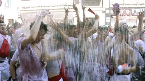 Tras dos años sin fiestas debido a la pandemia del covid, Begoña Moreno (Nuestra Señora de Gracia), Óscar Pérez (Real Casa de Misericordia) y Borja Macaya (Torre Monreal) han sido los encargados de lanzar el cohete ante una plaza de los Fueros abarrotada.