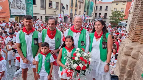 Como es tradición cada 25 de julio, cientos de tudelanos y tudelanas han participado esta mañana en la ofrenda floral a Santa Ana, un acto organizado por la peña La Teba y en el que también han intervenido la Comparsa de Gigantes y Cabezudos, los Gaiteros de Tudela y Pamplona, Txistularis y el Grupo Municipal de Danzas de Tudela.