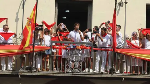 Christian Beguer consiguió emocionar a toda la plaza y elevar el momento a lo más álgido mientras sonaba la música de la comparsa de gigantes, gaiteros y la charanga La Revolución, que han iniciado poco después el recorrido por las calles.