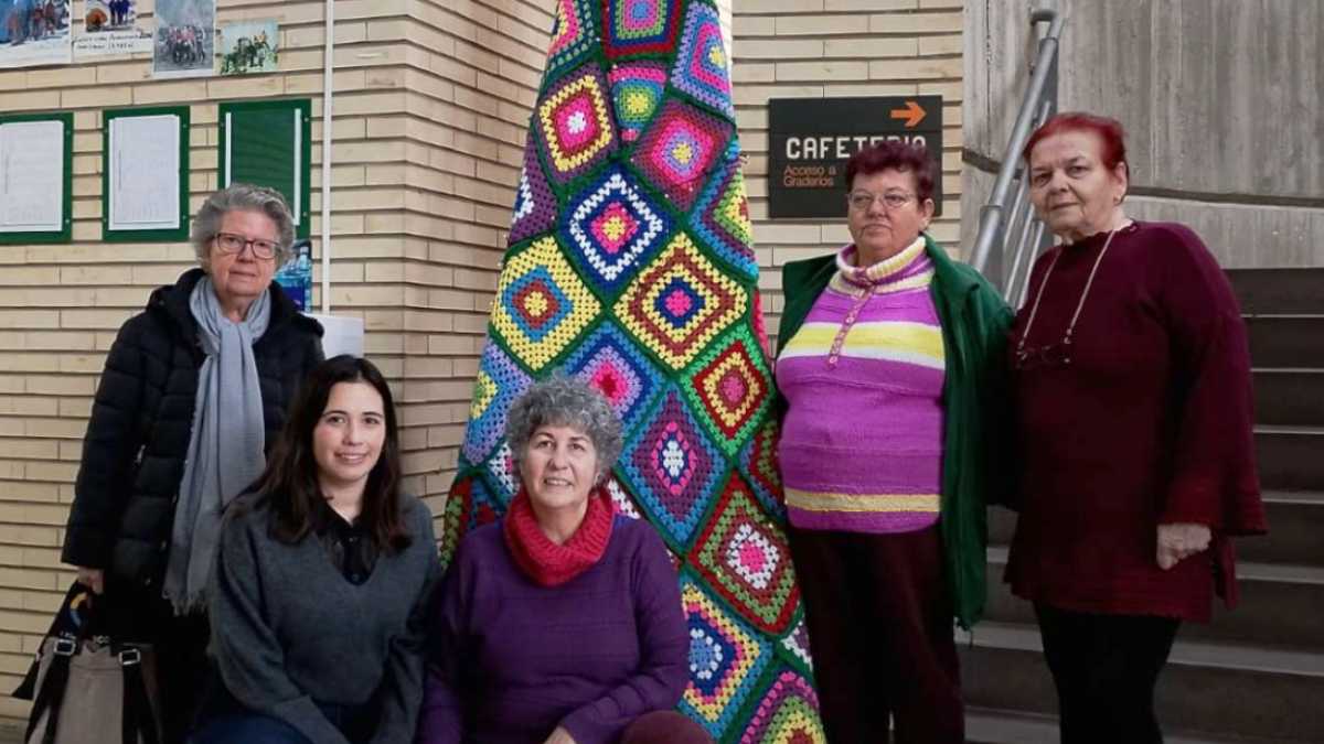 El Área de Igualdad del Ayuntamiento de Corella ha querido reconocer públicamente el trabajo del grupo de mujeres “Tejedoras de Corella”, autoras del árbol de Navidad a ganchillo que puede verse estos días en el Polideportivo Miguel Induráin.
