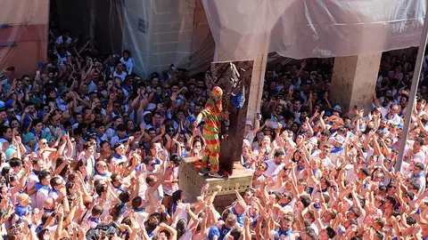 La identidad de la persona que lo representa permanece secreta hasta el 27 de agosto cuando pasado el mediodía regresa a la Casa Consistorial tras completar su recorrido acompañado por miles de turiasonenses y visitantes después de haber recibido una intensa lluvia de tomates.