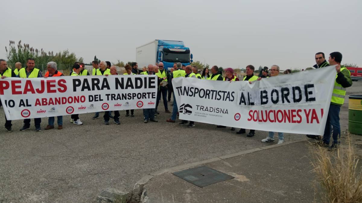 Transportistas navarros se movilizan en Ribaforada para decir “no” a los peajes