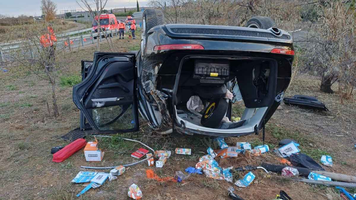 Según la información facilitada por los servicios de emergencia, el vehículo implicado sufrió una salida de vía con varias vueltas de campana, quedando uno de los ocupantes atrapado en el interior.