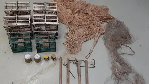 En el momento de la intervención, los agentes localizaron en el vehículo del acusado tres jaulas y una red, que contenían un total de 37 aves: 10 verdecillos adultos, 16 jilgueros europeos adultos, 10 jilgueros europeos jóvenes y un pardillo común adulto.