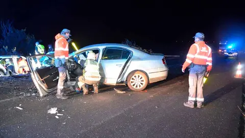 Dos personas resultaron heridas leves en una colisión frontal entre dos turismos ocurrida en la tarde de ayer, 22 de noviembre, en el kilómetro 49 de la carretera N-134, en el término municipal de San Adrián.