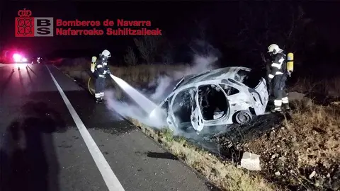 En el operativo intervinieron bomberos del parque de Peralta, una ambulancia de soporte vital básico y agentes de la Policía Foral, que se encargan de la investigación del siniestro.