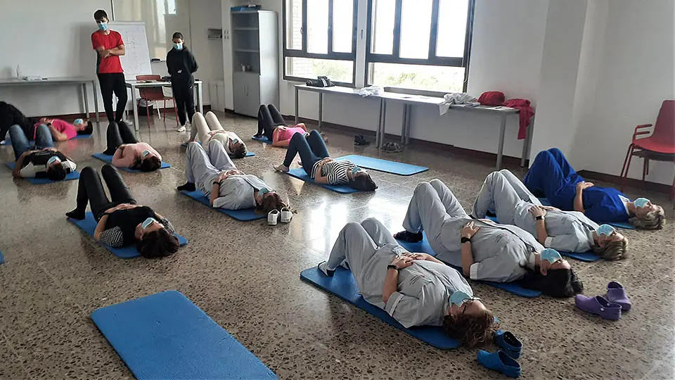 El proyecto incluye tres perfiles diferentes de actividades. En primer lugar, actividades orientadas al control postural, la respiración y la relajación. En segundo lugar, actividades relacionadas con el trabajo de fuerza, con ejercicios transferibles a su puesto de trabajo. Y en tercer lugar, actividades con soporte musical en las que se trabajará el ritmo, la percepción espacio-temporal y el movimiento con breves coreografías.