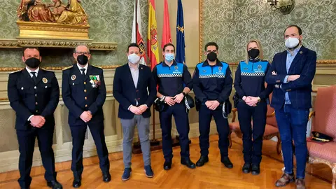El alcalde de Tudela, Alejandro Toquero, ha presidido este viernes la toma de posesión de cuatro nuevos agentes de Policía Local que pasan a engrosar la plantilla de este cuerpo. Los cuatro han superado el proceso de selección, mediante el sistema de oposición por la convocatoria que se publicó en el mes de febrero de 2021.