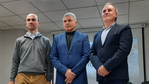 El rector de la Universidad Pública de Navarra (UPNA), Ramón Gonzalo; junto con el vicerrector de Economía, Planificación y Estrategia, Martin Larraza; y el director del área del campus de Tudela, Ignacio Latorre; mantuvieron este jueves 16 de febrero, una reunión con representantes de empresas de la Ribera para exponer las posibilidades de colaboración con la Universidad en materias como formación, transferencia o empleo, entre otras. Al encuentro, que ha contado con la participación de Caja Rural de Navarra, han acudido 25 compañías incluidas en la Asociación Empresa Ribera (AER).
